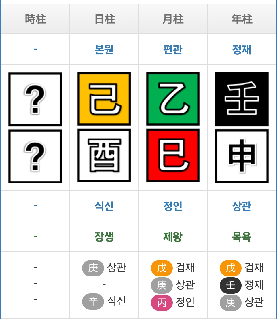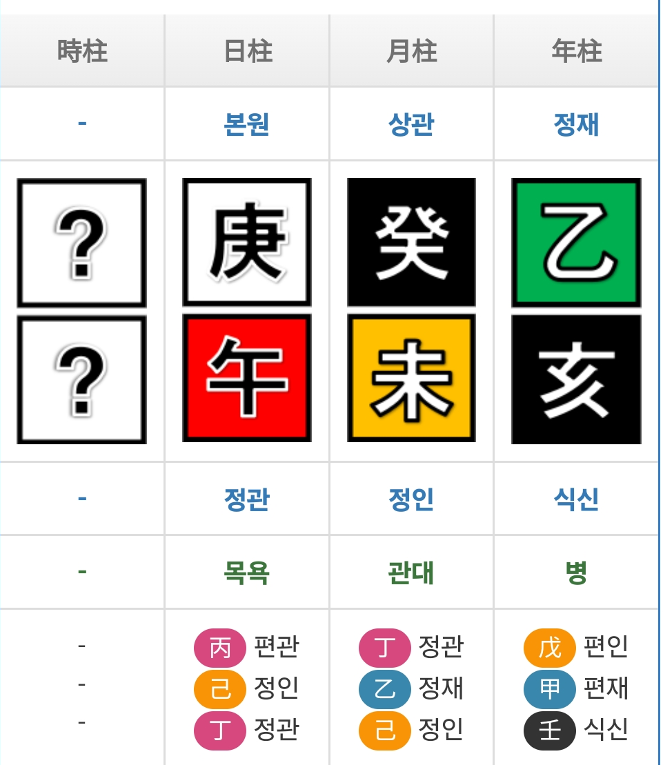 불륜은 이성을 의미하는 재-관 운에 만나서 났다는 사실에 기분이 참 묘해진다...